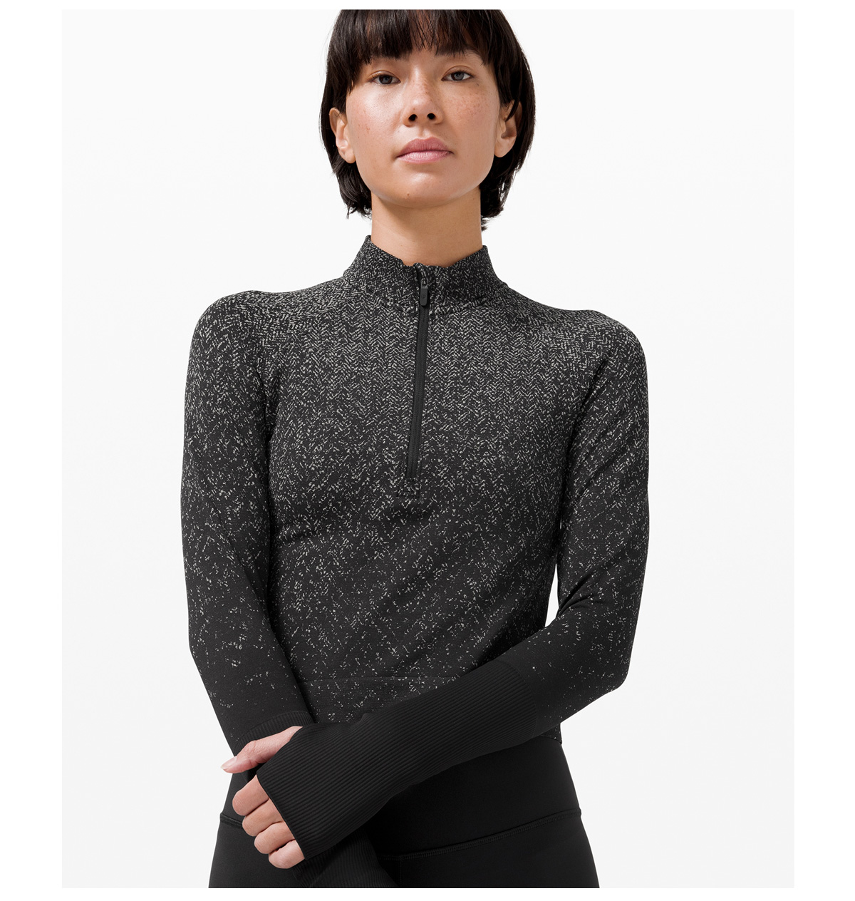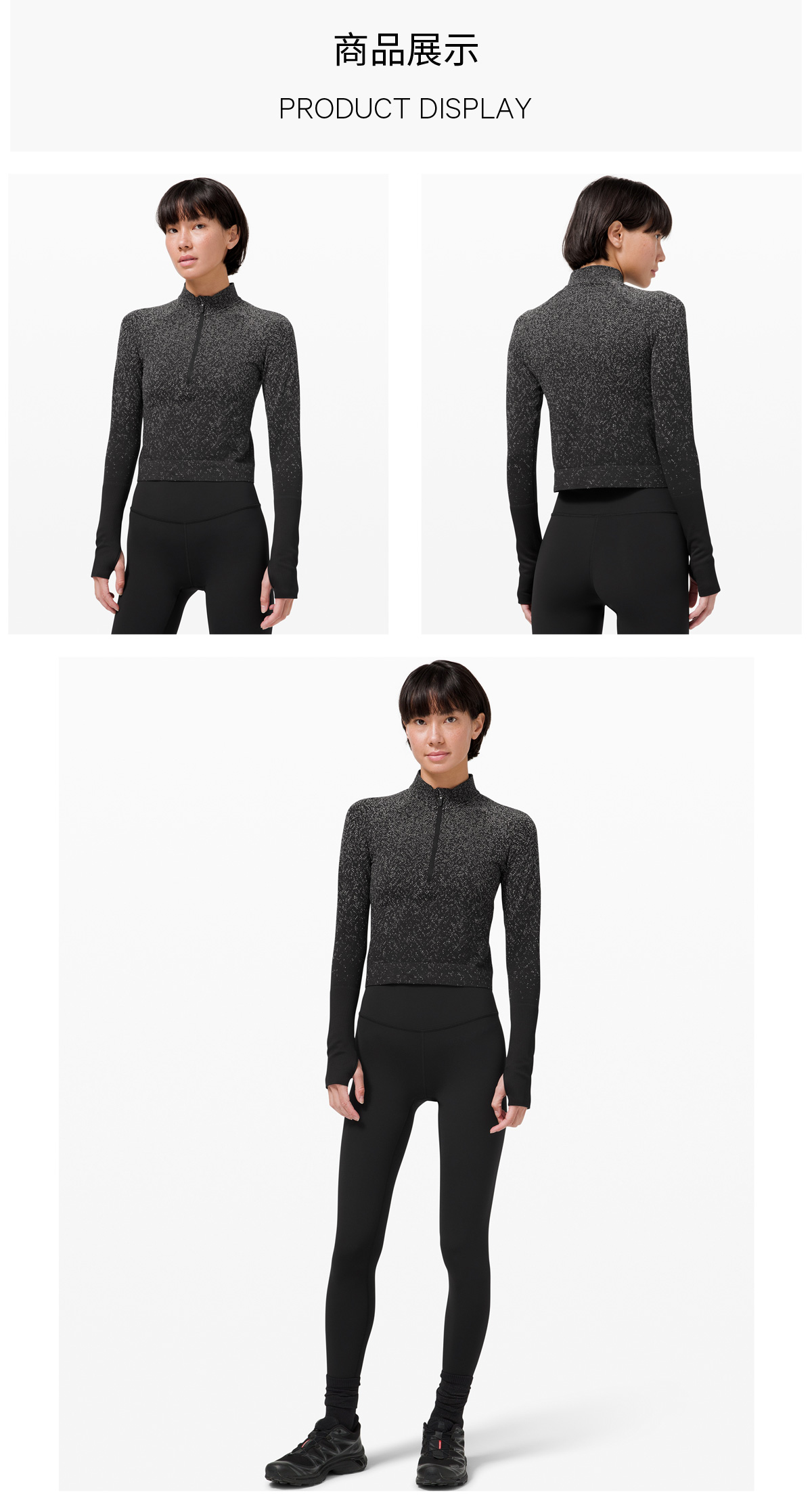 女士运动短款半拉链衫