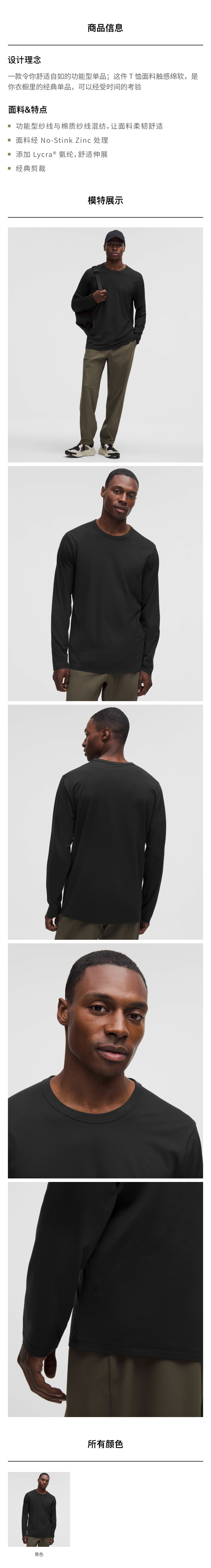 男士运动长袖 T 恤