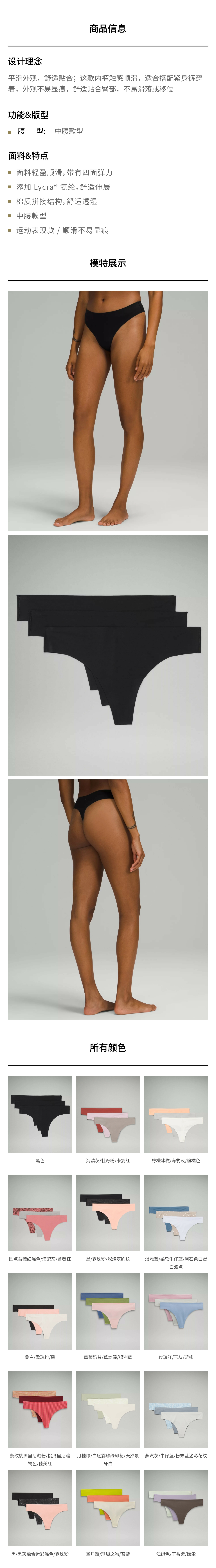 女士中腰 T 型内裤 *3 条装 速干芯吸