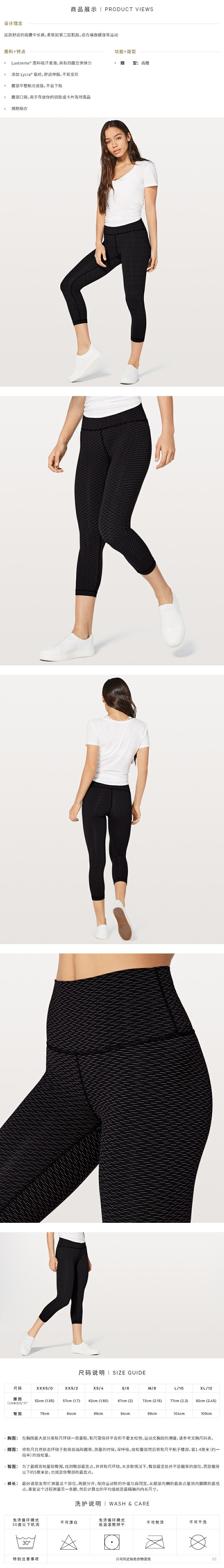 女士运动高腰中长裤