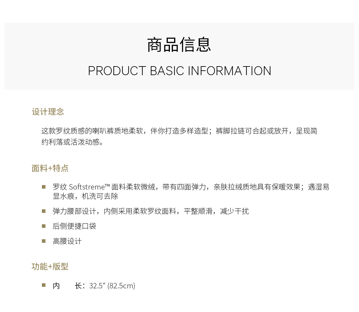 女士拉绒罗纹喇叭裤 32.5" *裤脚拉链