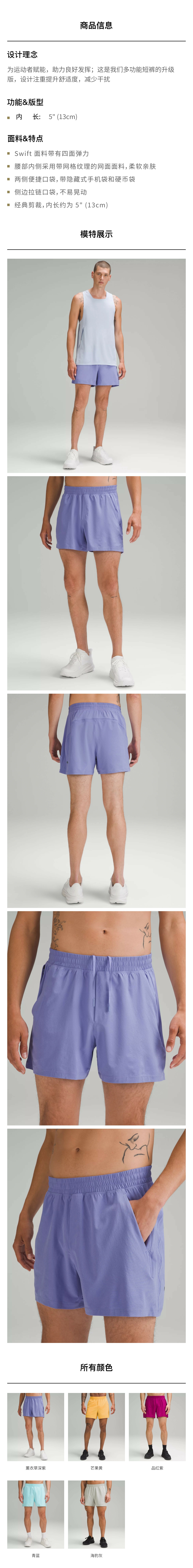 男士运动短裤 5" *无内衬 速干芯吸