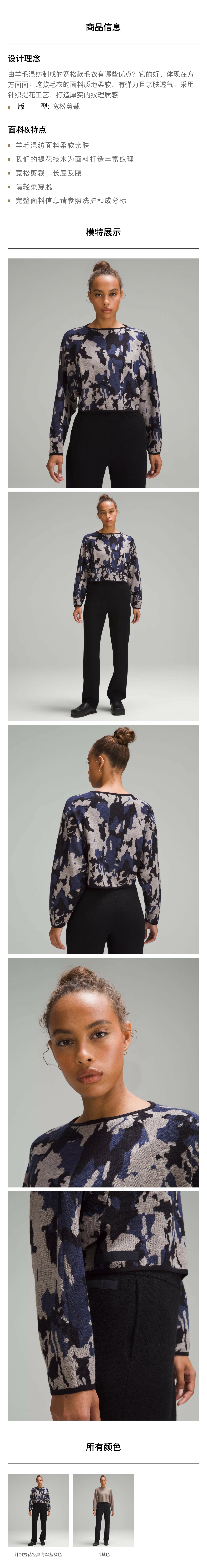 女士羊毛混纺宽松款针织毛衣 透气