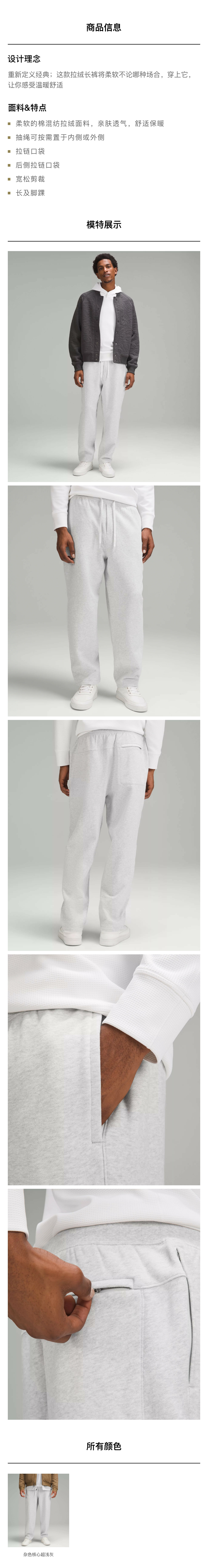 男士拉绒长裤 透气