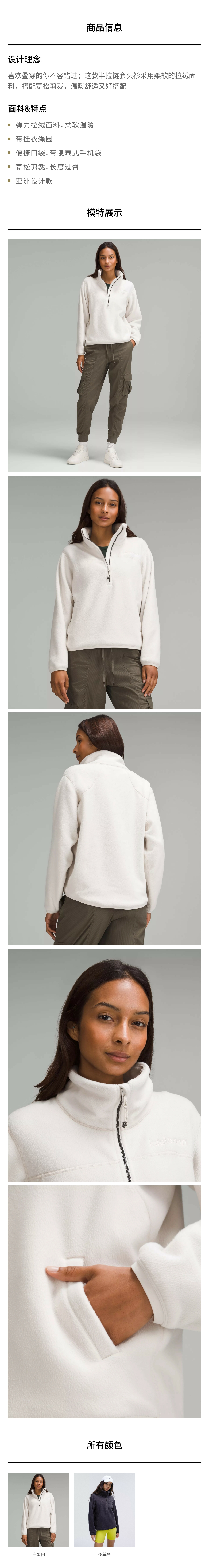 女士半拉链拉绒套头衫