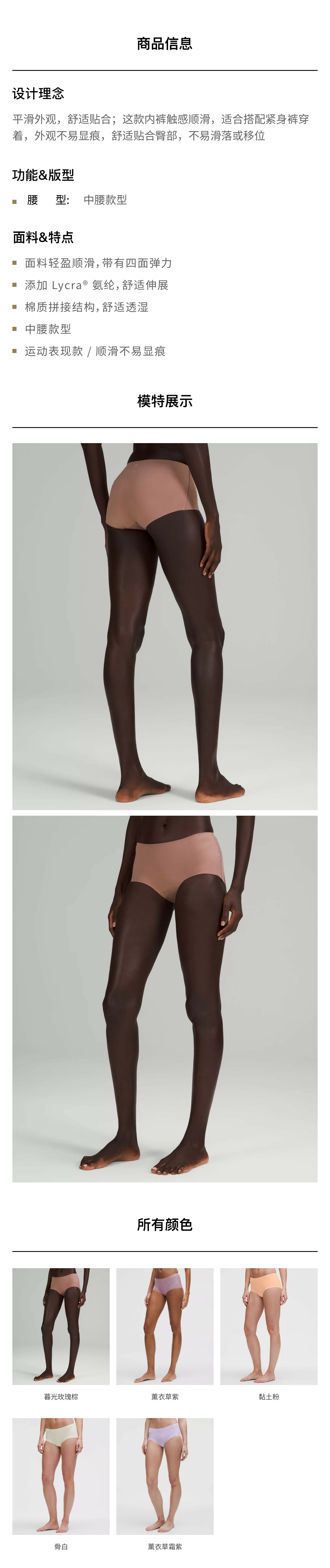 女士中腰平角内裤 速干芯吸
