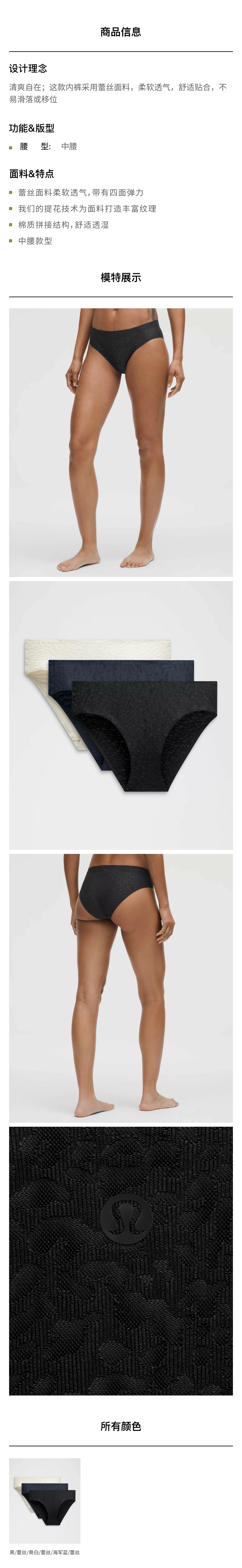 女士中腰比基尼内裤 *蕾丝 3 条装
