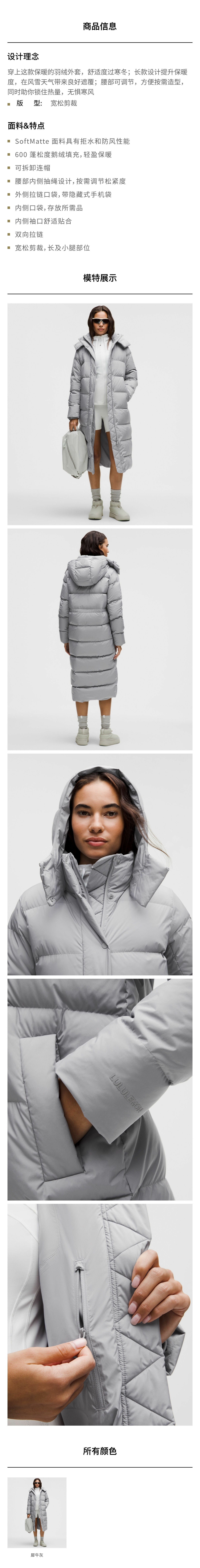 女士长款羽绒外套 防风拒水