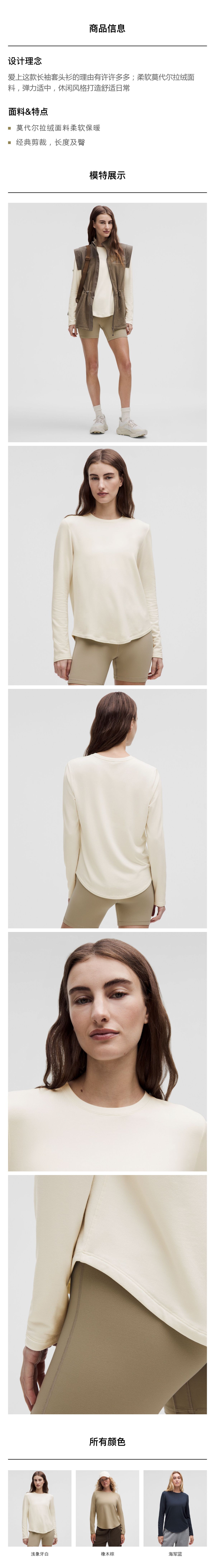 女士莫代尔拉绒长袖套头衫