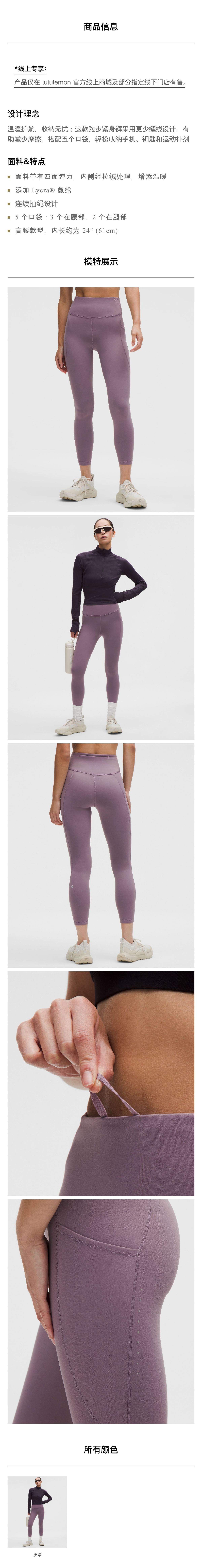 女士运动高腰拉绒紧身裤 24" *口袋款