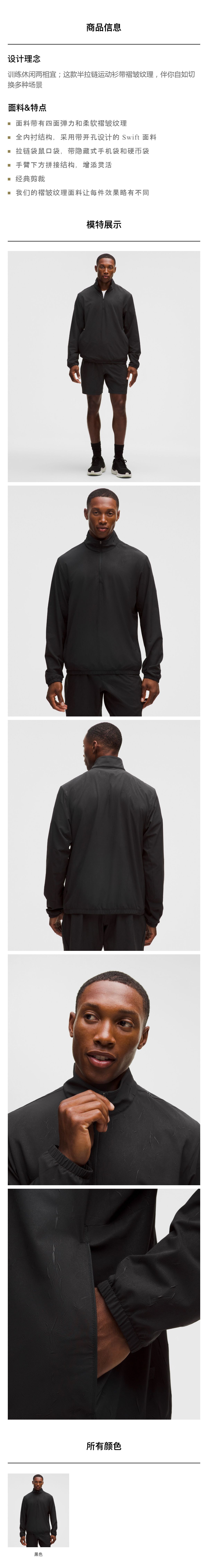 男士褶皱纹理半拉链运动衫