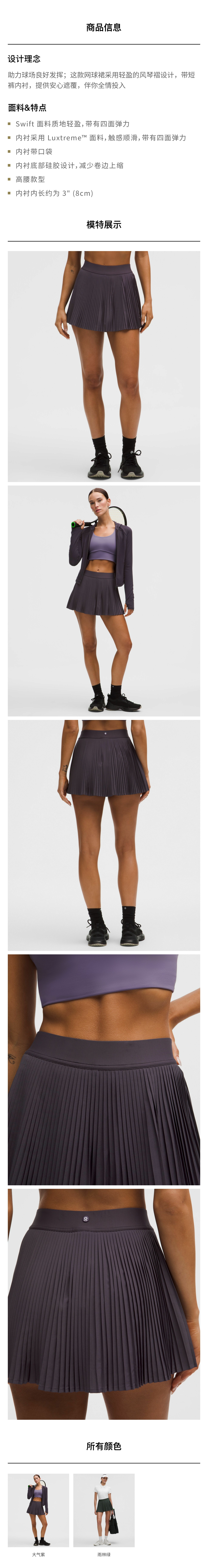 女士风琴褶高腰网球裙