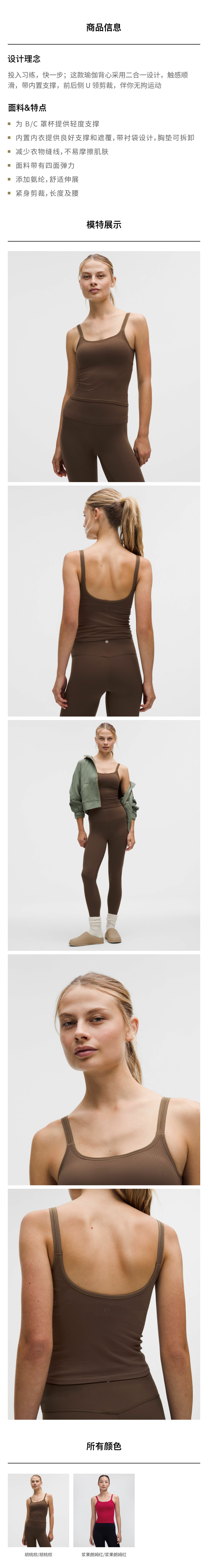 女士前后 U 领短款运动背心 B/C