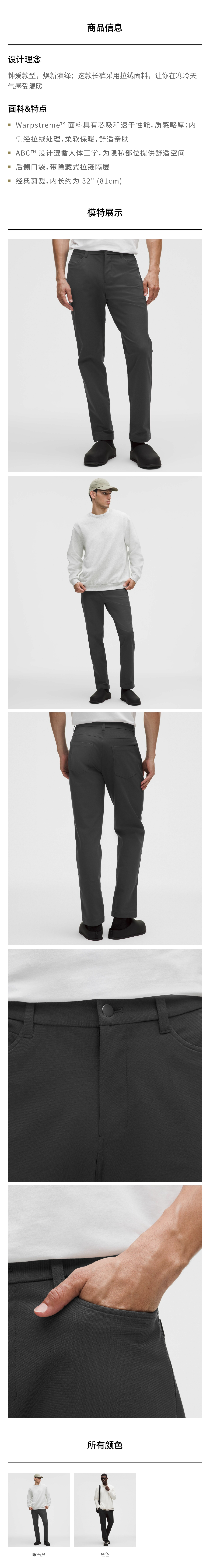男士经典剪裁五袋款长裤 32L *拉绒 Warpstreme