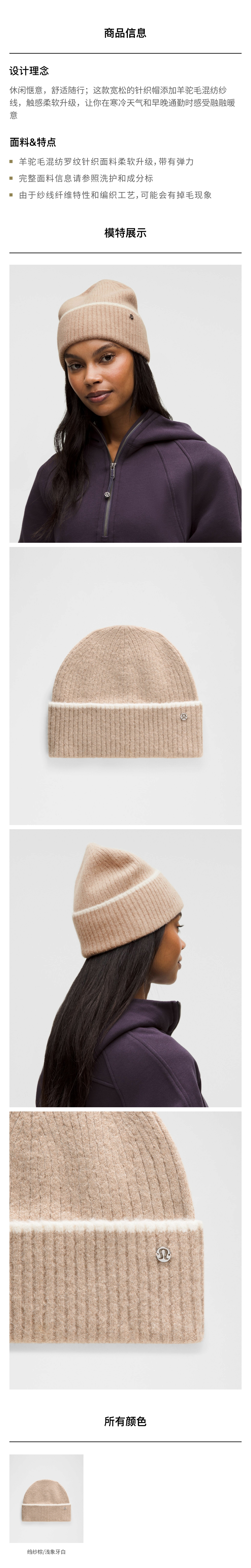 女士羊驼毛混纺针织帽