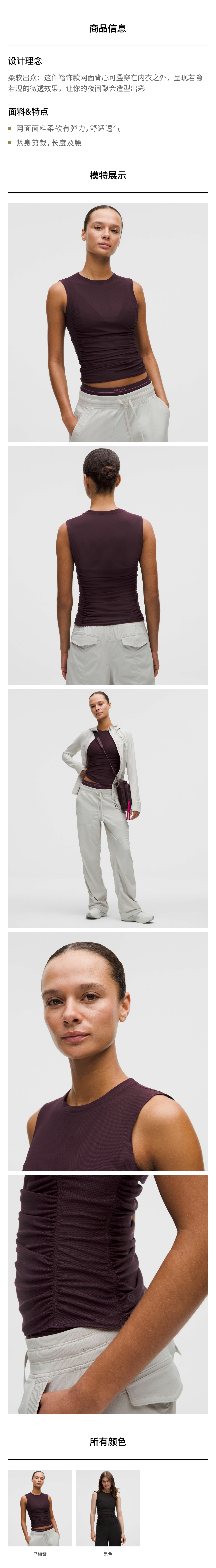 女士网面褶饰背心