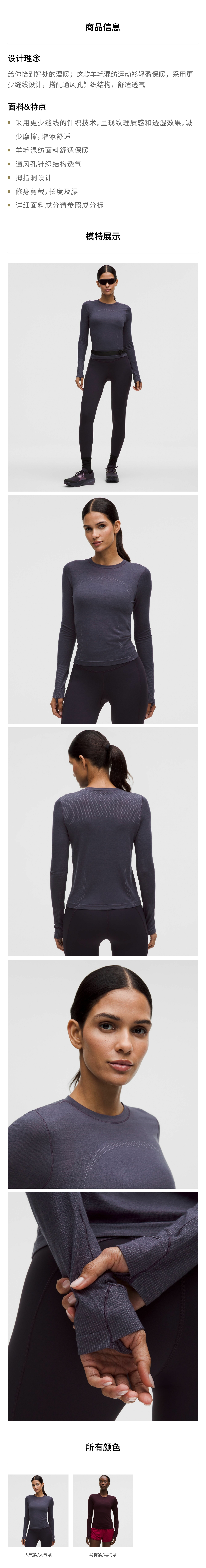 女士羊毛混纺长袖运动衫