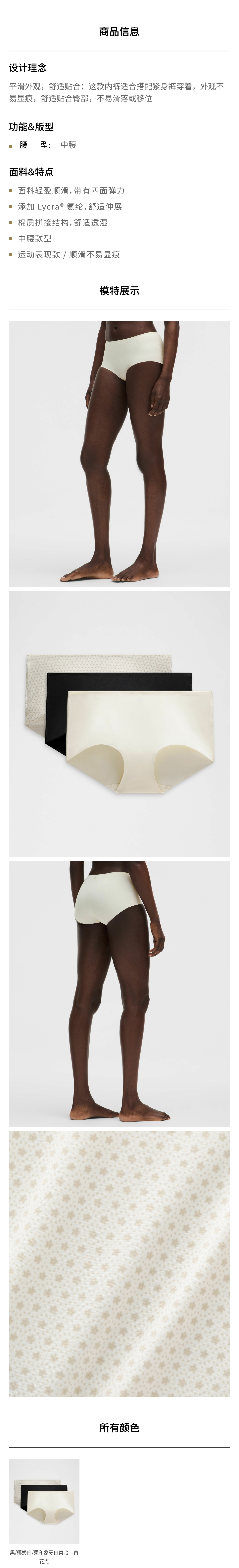 女士中腰平角内裤 *3 条装 速干芯吸