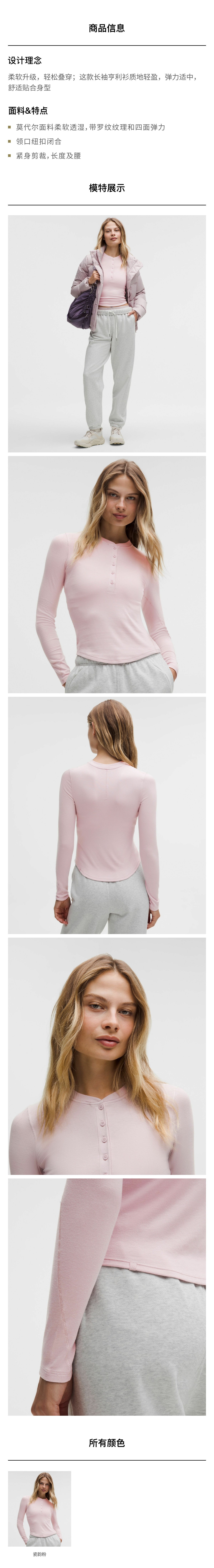 女士紧身剪裁长袖亨利衫