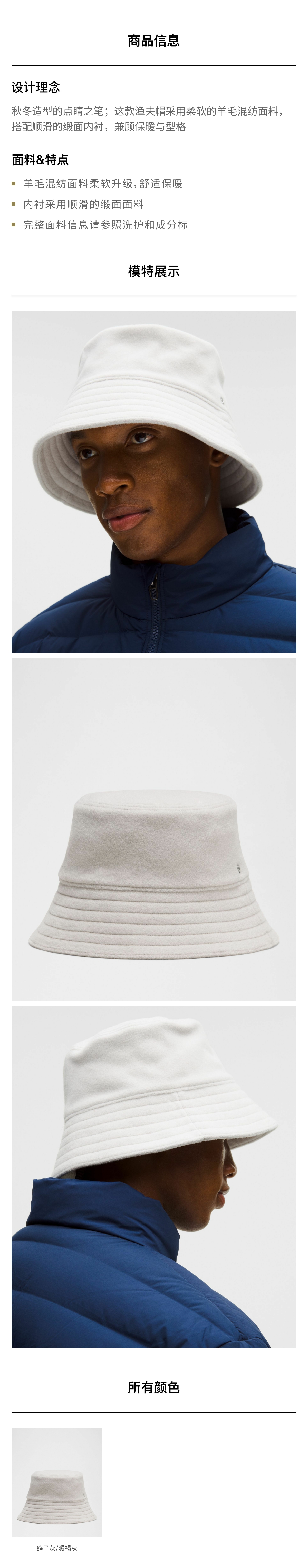 缎面内衬羊毛混纺渔夫帽