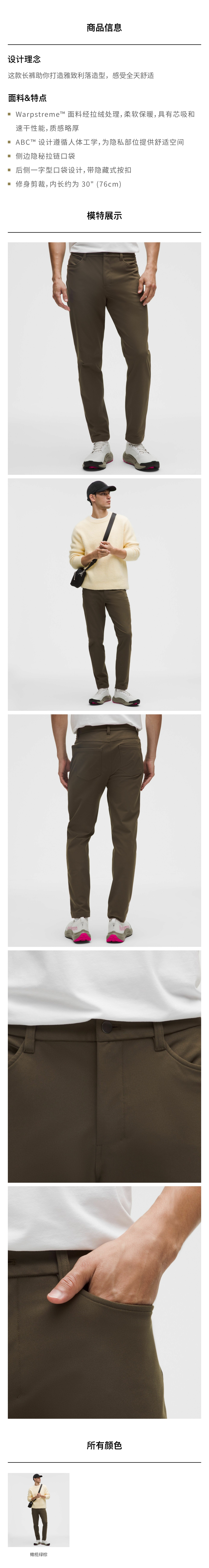 男士修身剪裁长裤 30L *拉绒 Warpstreme