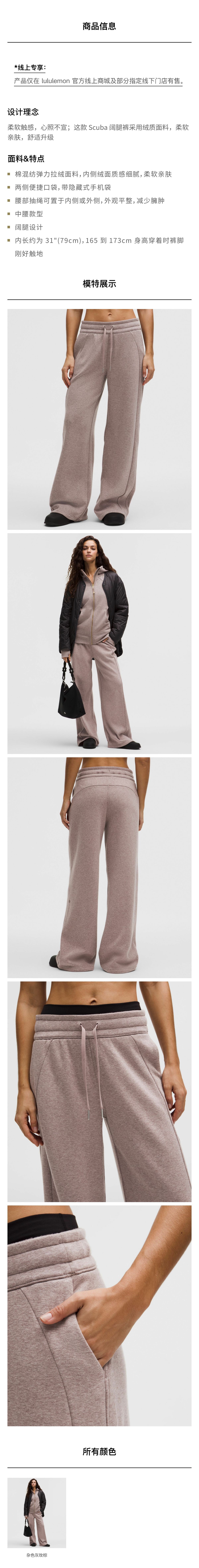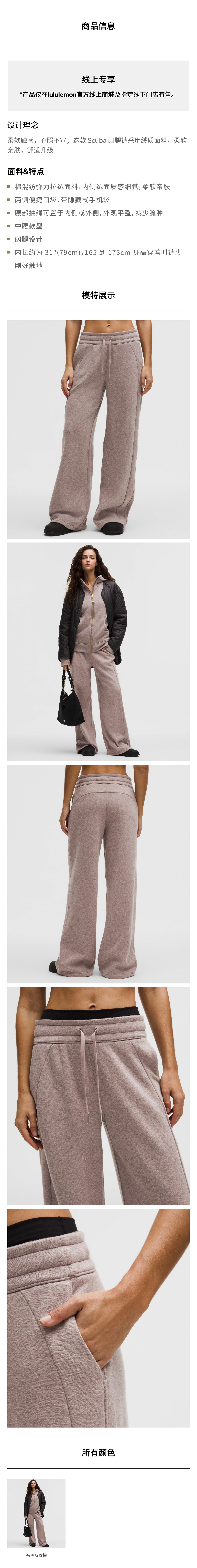 女士常规款中腰阔腿裤 *加绒