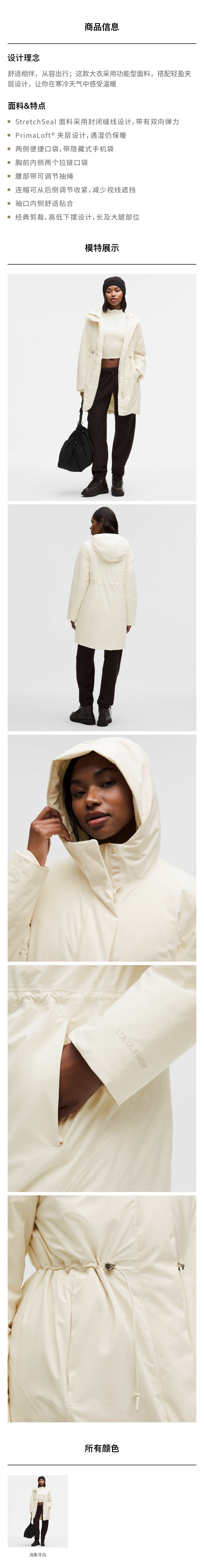 女士带夹层腰部抽绳大衣