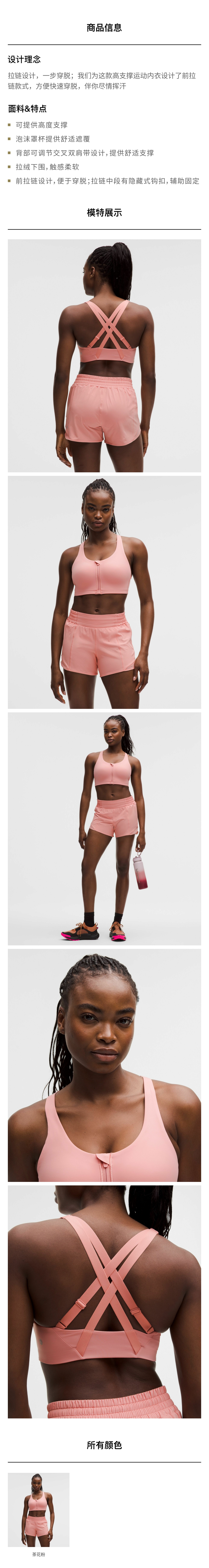 女士高支撑前拉链运动内衣