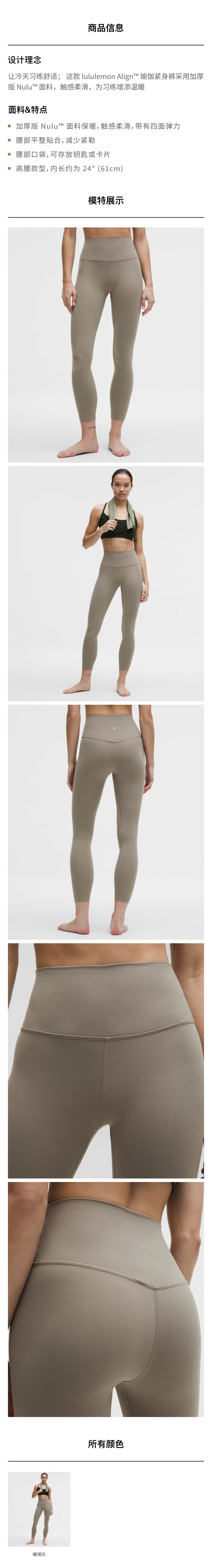 女士运动高腰紧身裤 24" *保暖