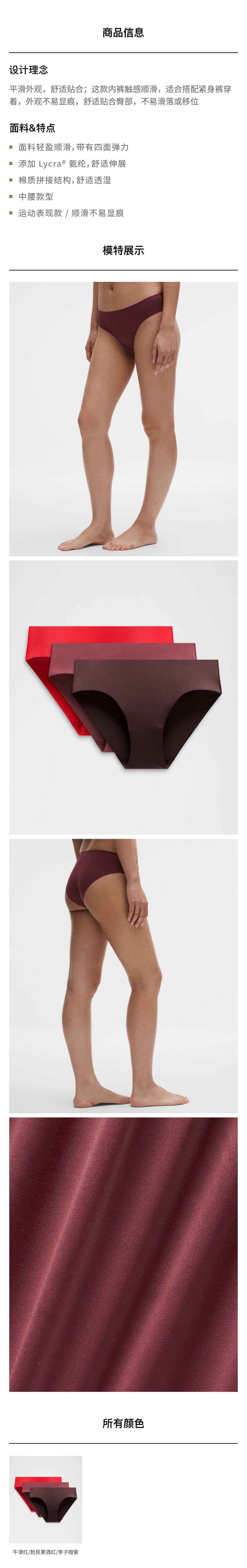 女士中腰比基尼内裤 3条装 *新年款
