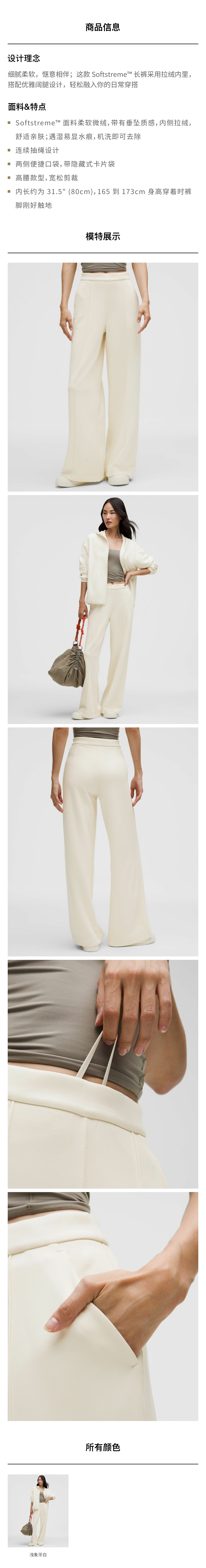 女士拉绒中褶阔腿裤 *常规款