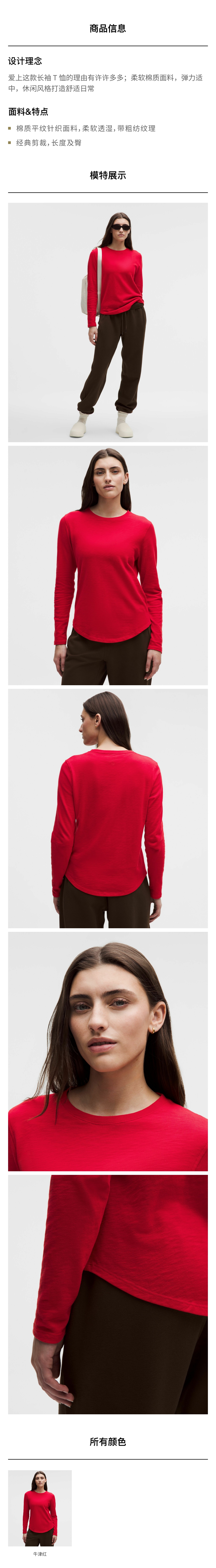 女士长袖 T 恤 *粗纺平纹针织