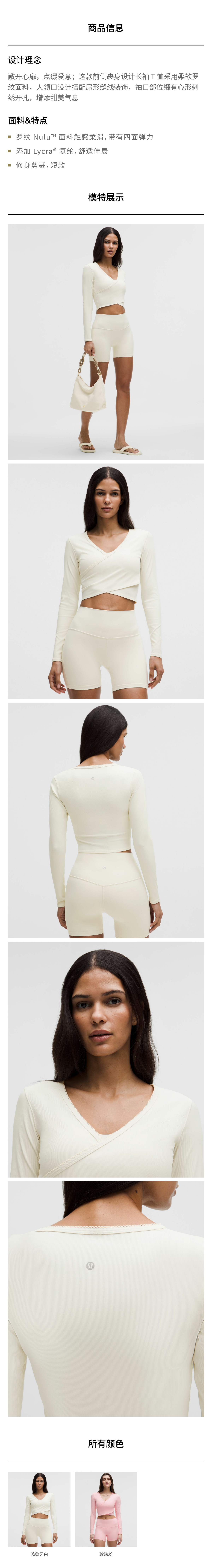 女士运动罗纹前侧裹身设计长袖 T 恤 *心形开孔