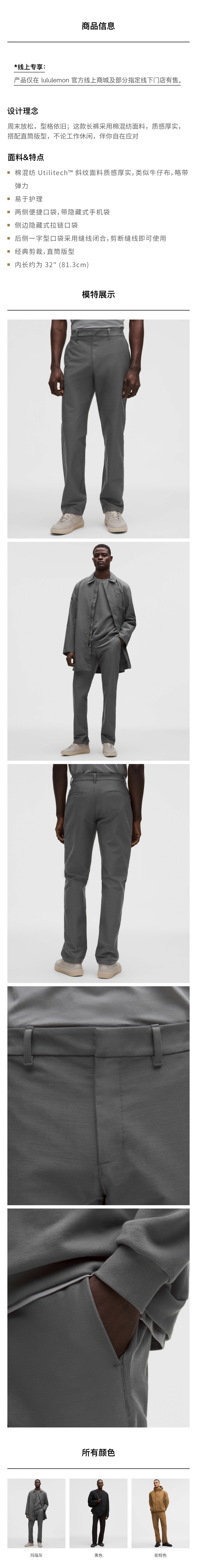 男士经典剪裁直筒长裤 32L