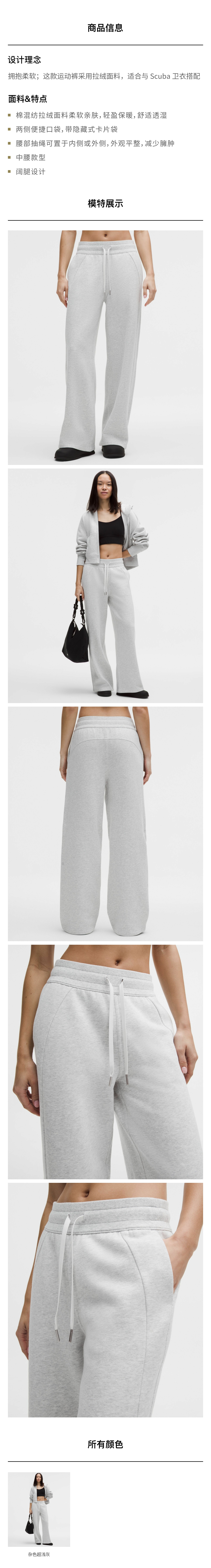 女士中腰阔腿运动裤