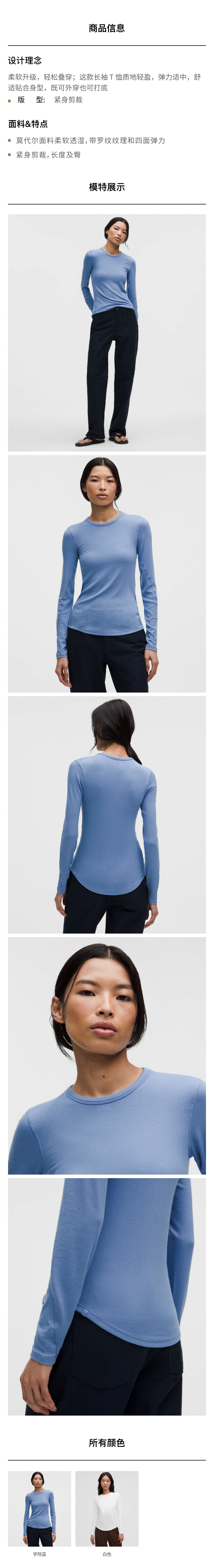 女士紧身剪裁长袖 T 恤