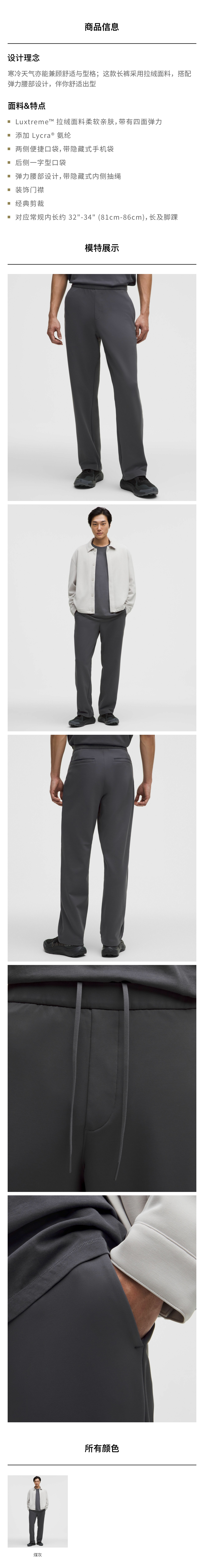 男士经典剪裁拉绒长裤 *常规款