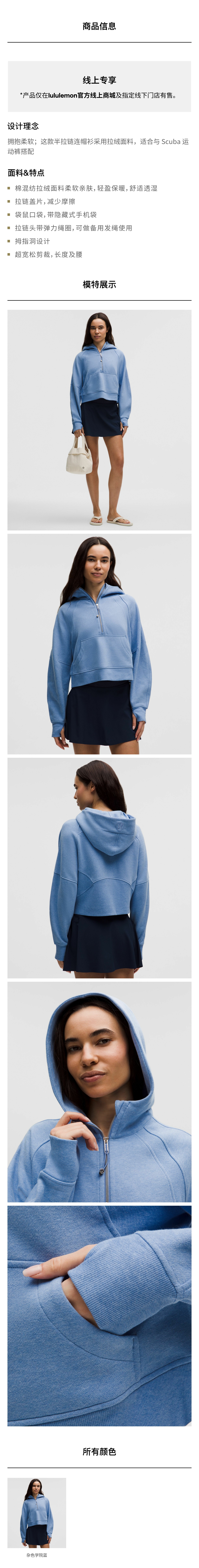 女士超宽松款半拉链连帽衫