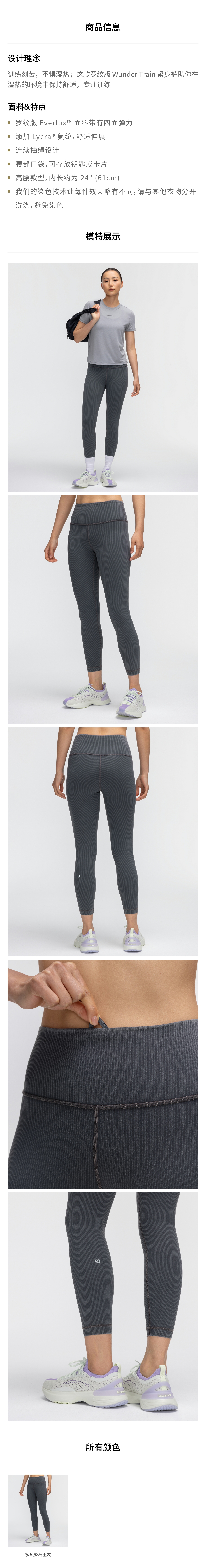 女士运动罗纹高腰紧身裤 24" *Wash
