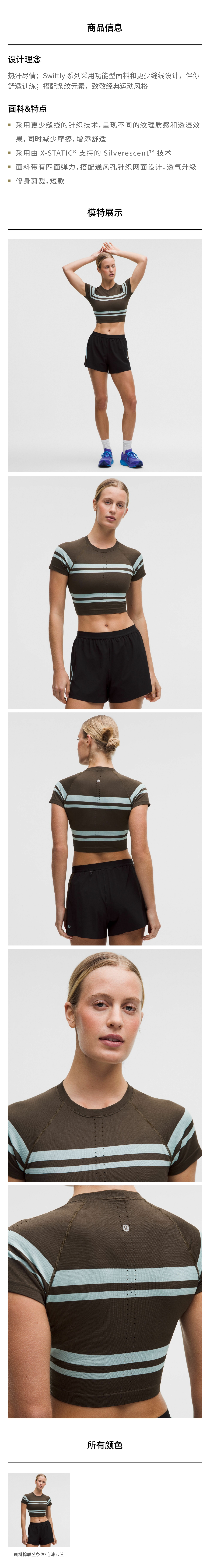 女士运动短款 T 恤 2.0 *条纹
