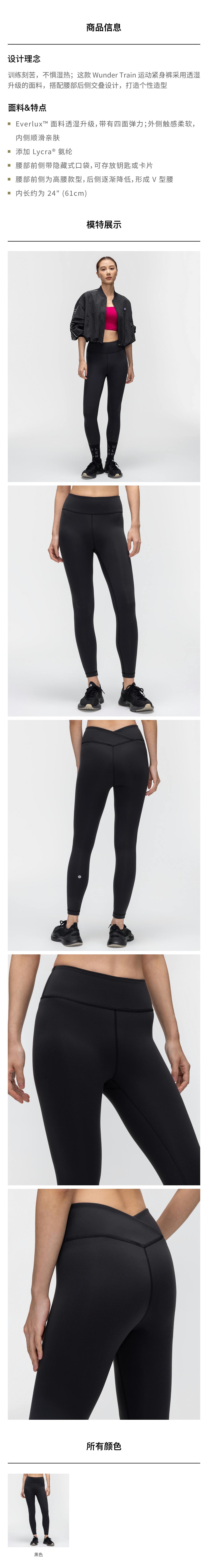 女士运动 V 型设计紧身裤 24"