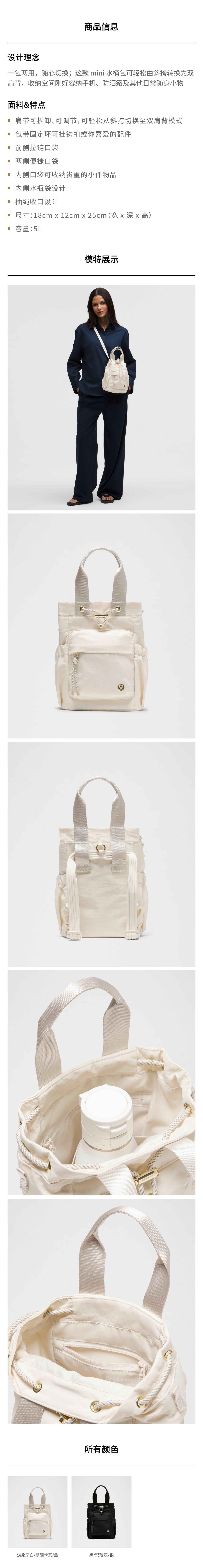 女士多功能抽绳水桶包