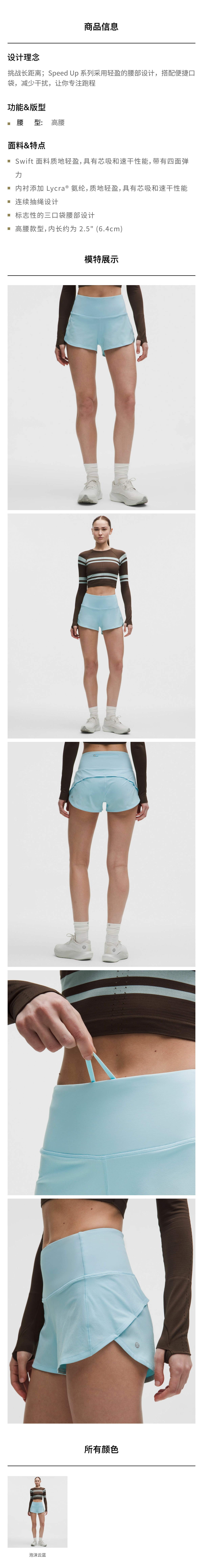 女士运动高腰短裤 2.5" *内衬款