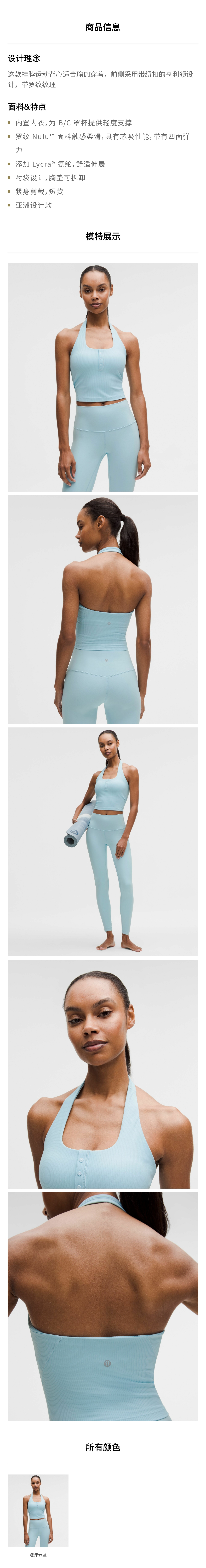 女士罗纹亨利领挂脖运动背心 B/C