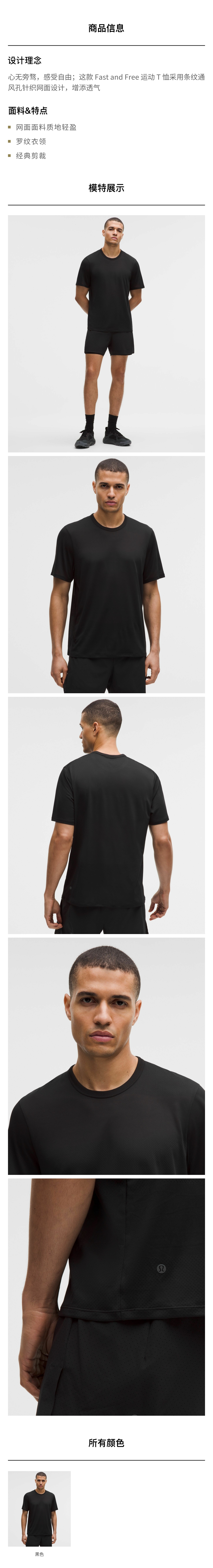 男士运动短袖 T 恤 *开孔条纹