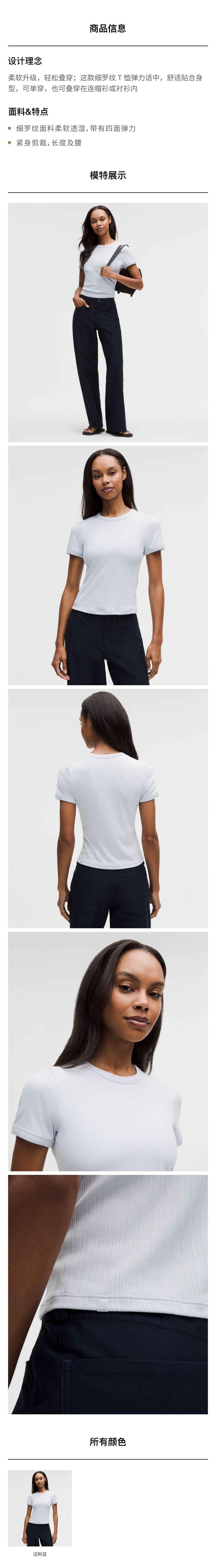 女士紧身剪裁细罗纹平直下摆 T 恤