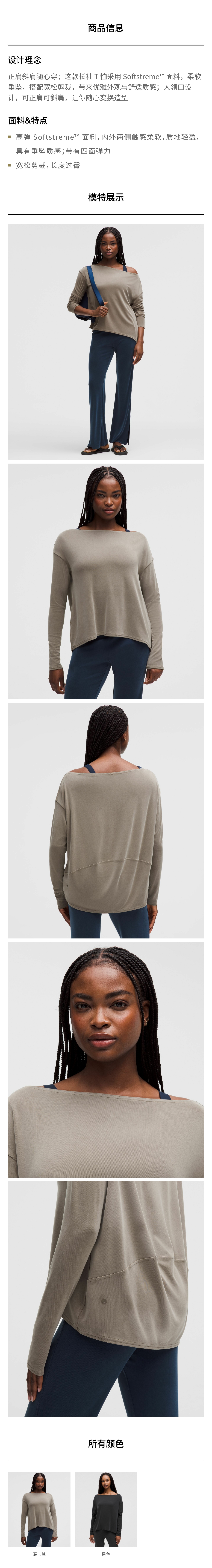 女士垂坠感露肩长袖 T 恤