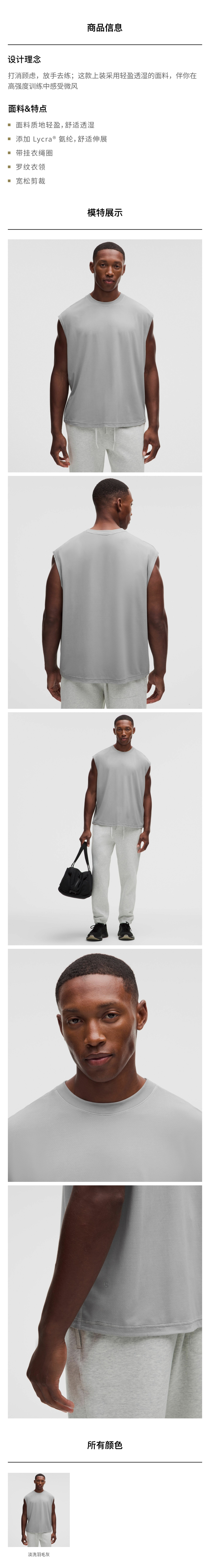 男士常规偏短款运动背心 *Wash
