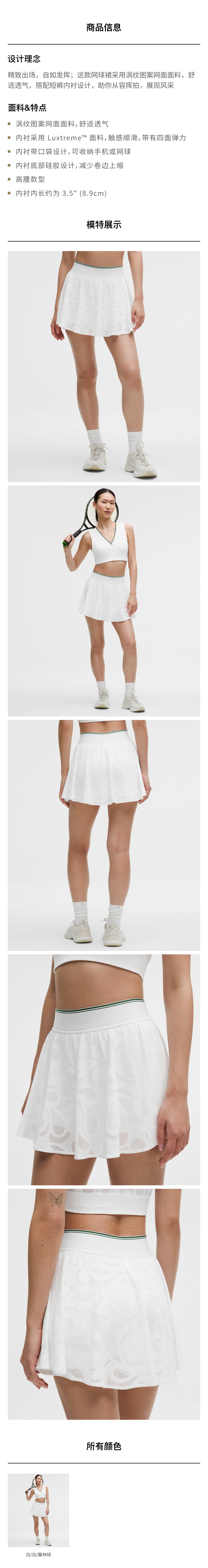 女士涡纹图案网面网球裙