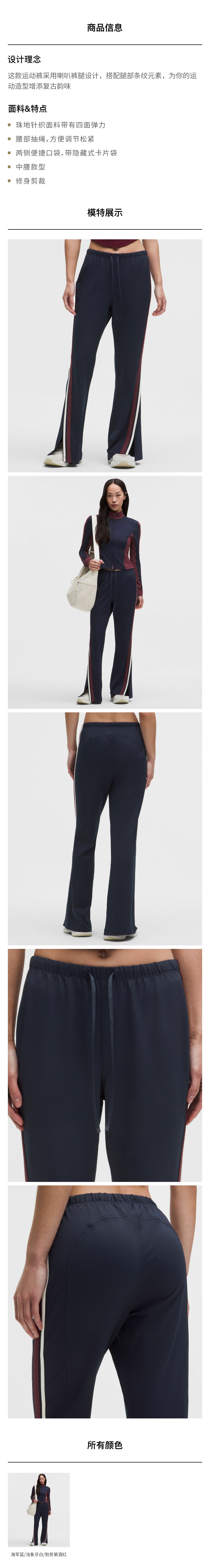 女士条纹修身剪裁中腰运动裤